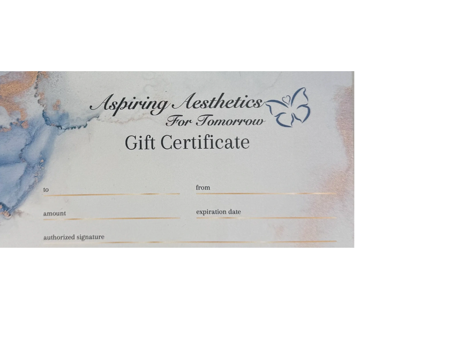Looking for gift for that hard to shop for individual? A Gift Card is the perfect gift for your friend or loved one. Gift cards start at $25 and can be used for any service offered by Aspiring Aesthetics, Botox®/Dysport® Men's Testosterone or a Massage...Want to give a physical card? Stop by and pick up one in office.